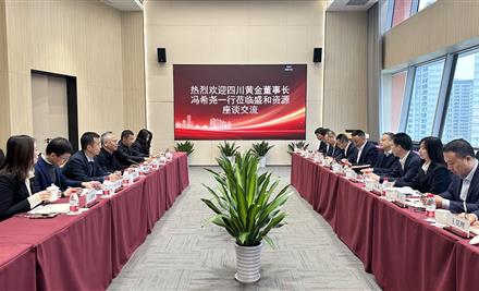 12月8日,四川黄金股份有限公司(以下简称“四川黄金”)党委书记、董事长冯希尧等一行10余人赴盛和资源座谈交流。盛和资源董事长谢兵接待了冯希尧一行。